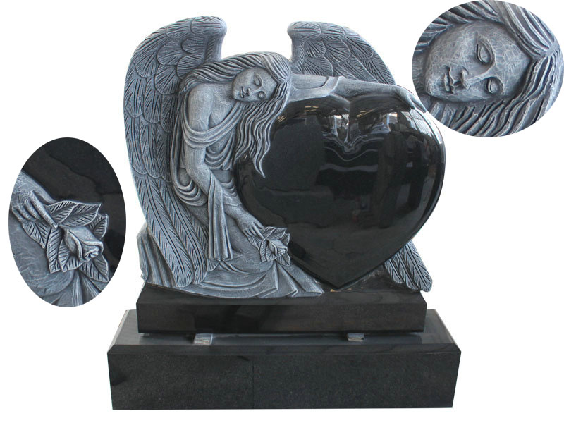 1. Product Name: Shanxi Black Granite Angel Monument Holding Polished Heart