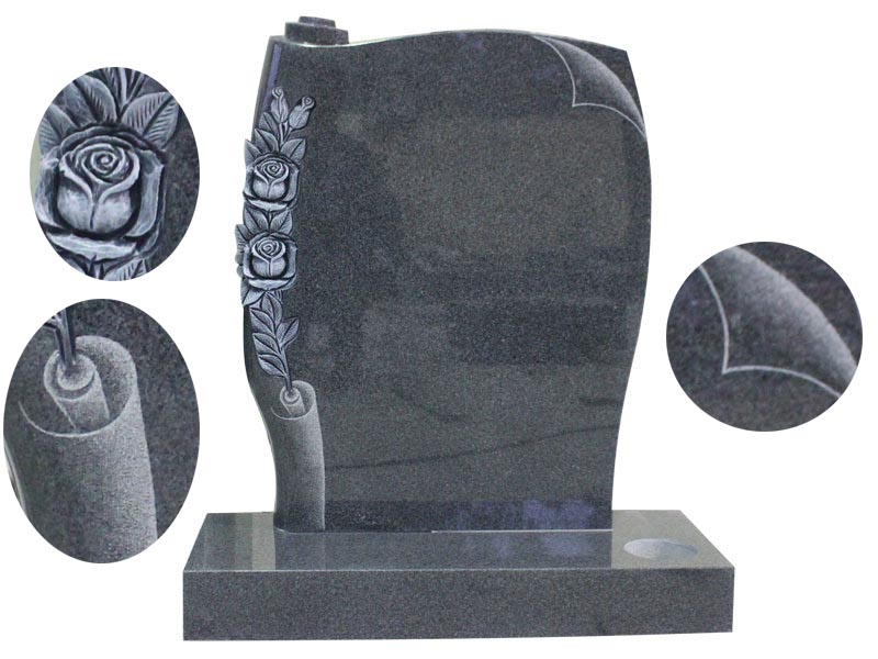 1. Product Name: Headstone With Carved Scroll And English Rose Design